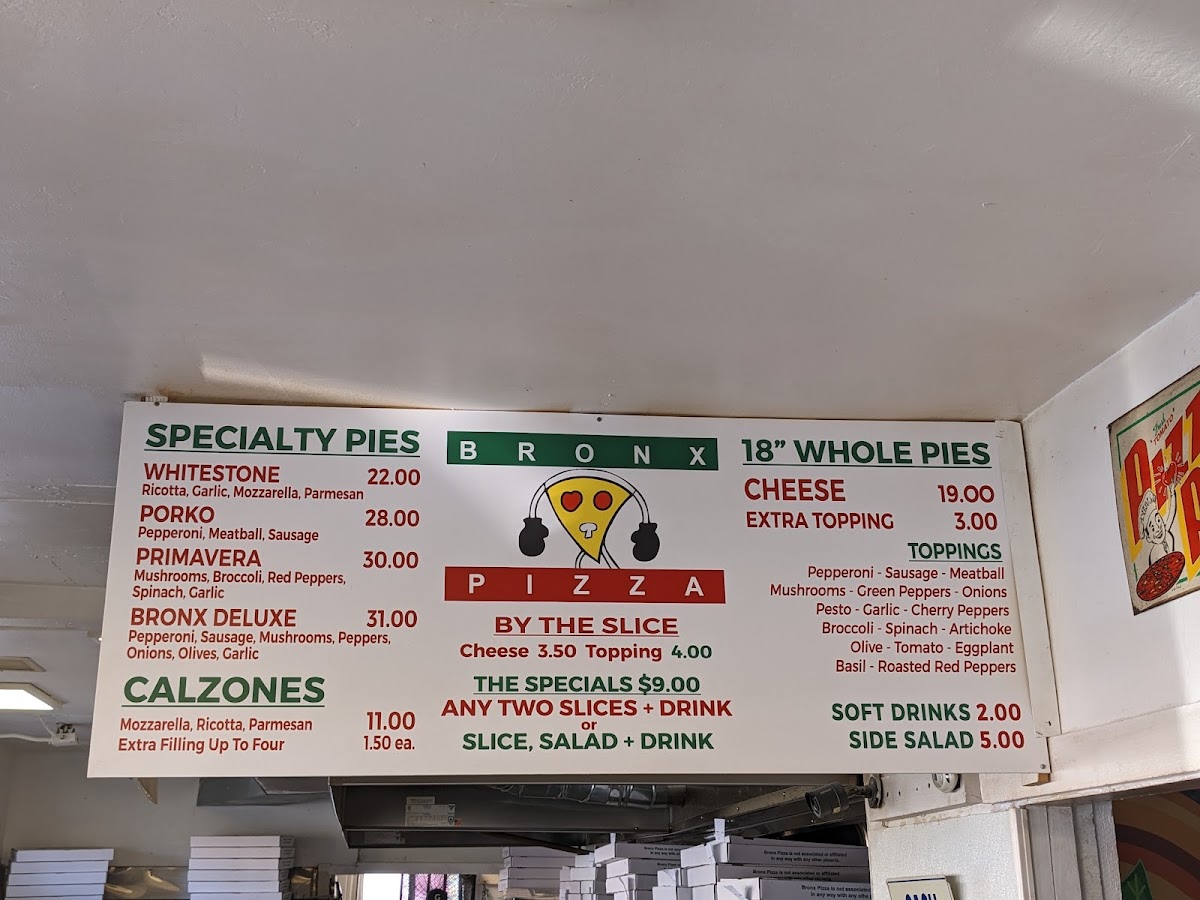 Cuisine Type: Bronx Pizza serves up classic New York-style pizza, and you can almost hear the bustling streets of NYC with each bite. Their thin, foldable crust is perfectly baked—crispy on the outside yet chewy on the inside. Whether you're a fan of cheese or looking for something with a little more flair, Bronx Pizza's menu caters to all tastes.